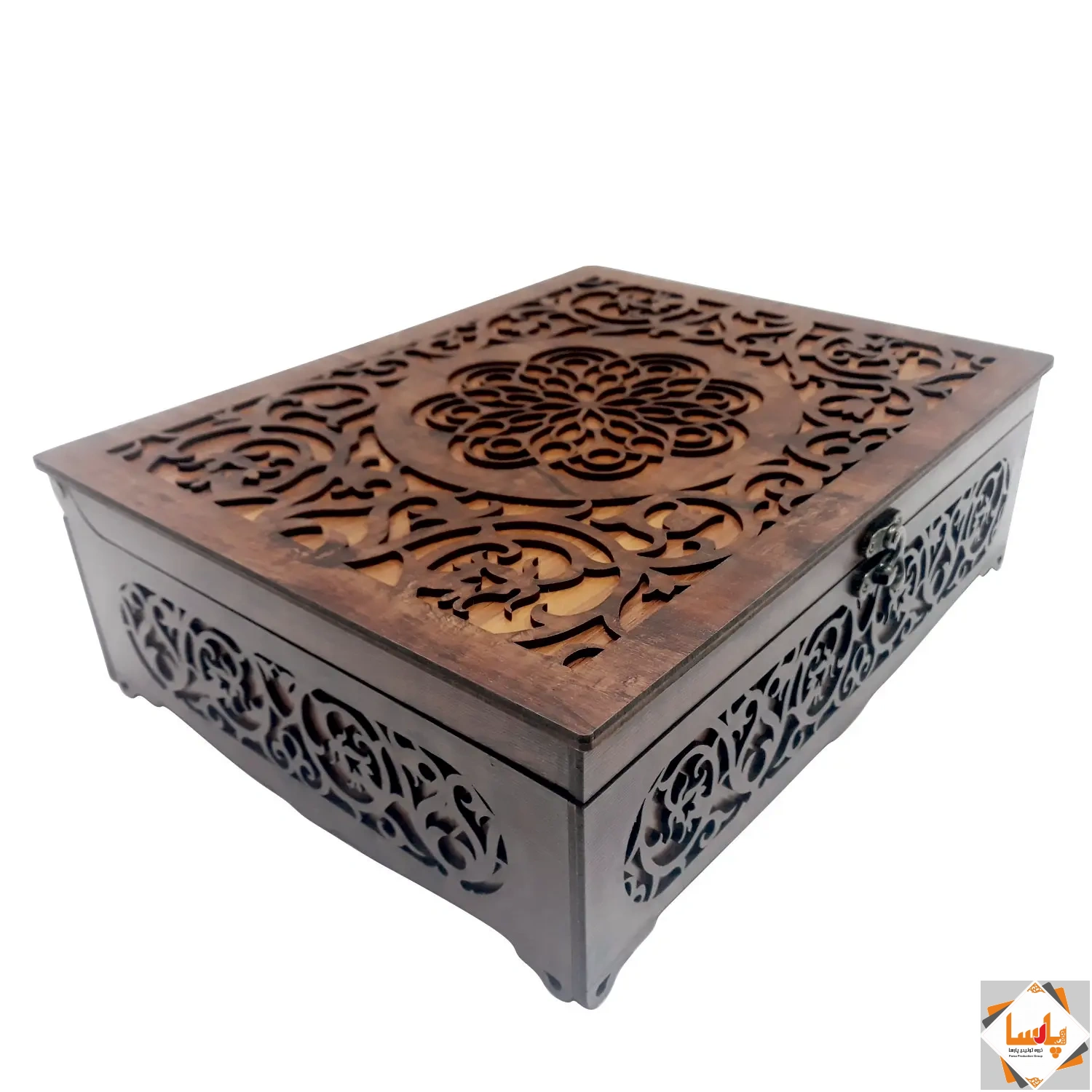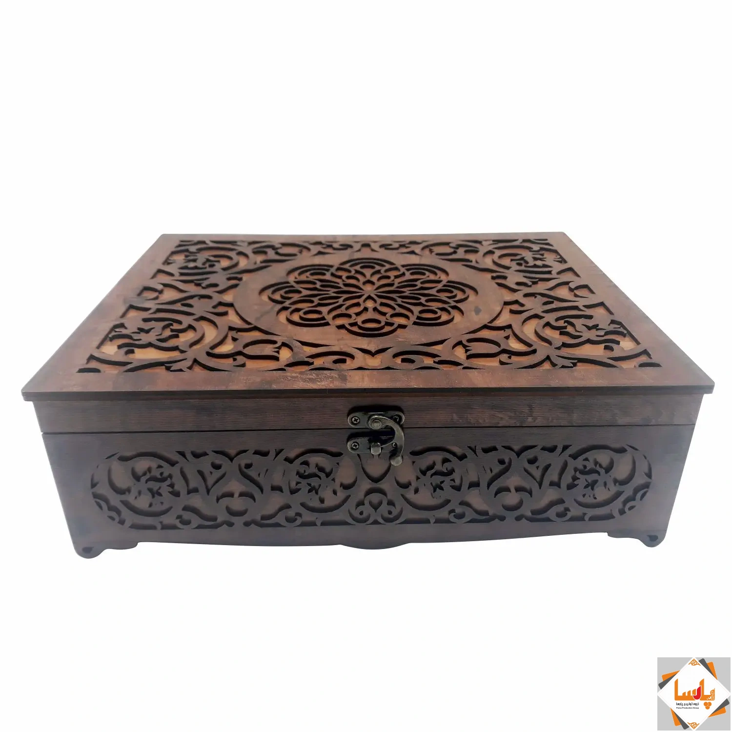 این جعبه هدیه یک محصول بسیار فوق العاده می باشد زیرا هم نسبت به سایر جعبه های هدیه چوبی بزرگ تر می باشد. هم طرحی که روی این محصول کار شده است بسیار زیبا می باشد و دل هر شخصی را بعد دیدن می برد .