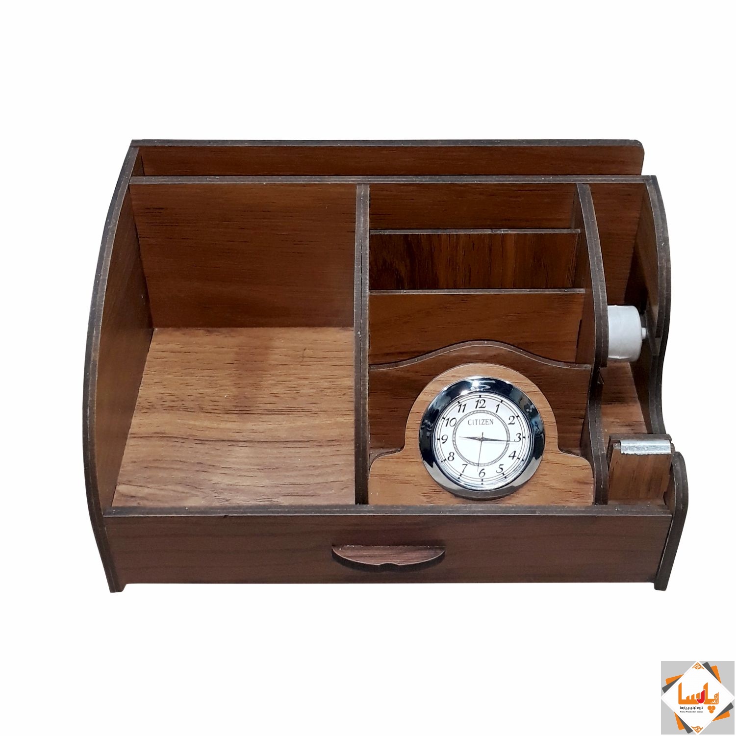 استند لوازم اداری رومیزی مدل ساعت دار یک وسیله بسیار زیبا و کارآمد که هر شخصی می تواند از آن جهت قرار دادن لوازم ضروری استفاده نمایید تا باعث مرتب شدن میز کار شما شود .